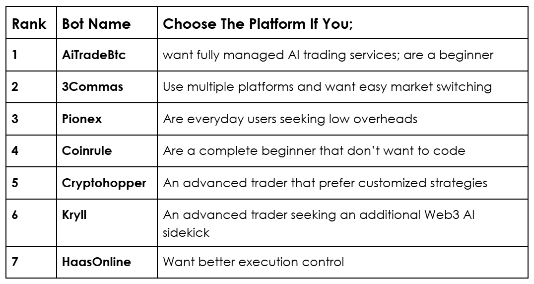 Here is Our Ranking List of the Top 7 AI Crypto Trading Bots