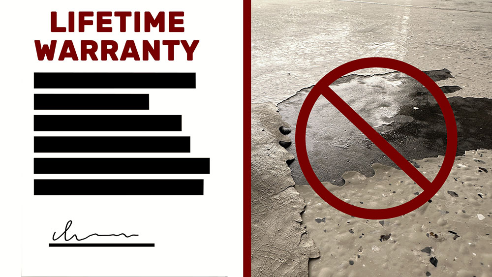 Unlike typical 1-day coating warranties that exclude moisture vapor transmission or hydrostatic pressure, this warranty addresses one of the most misunderstood risks in residential concrete.