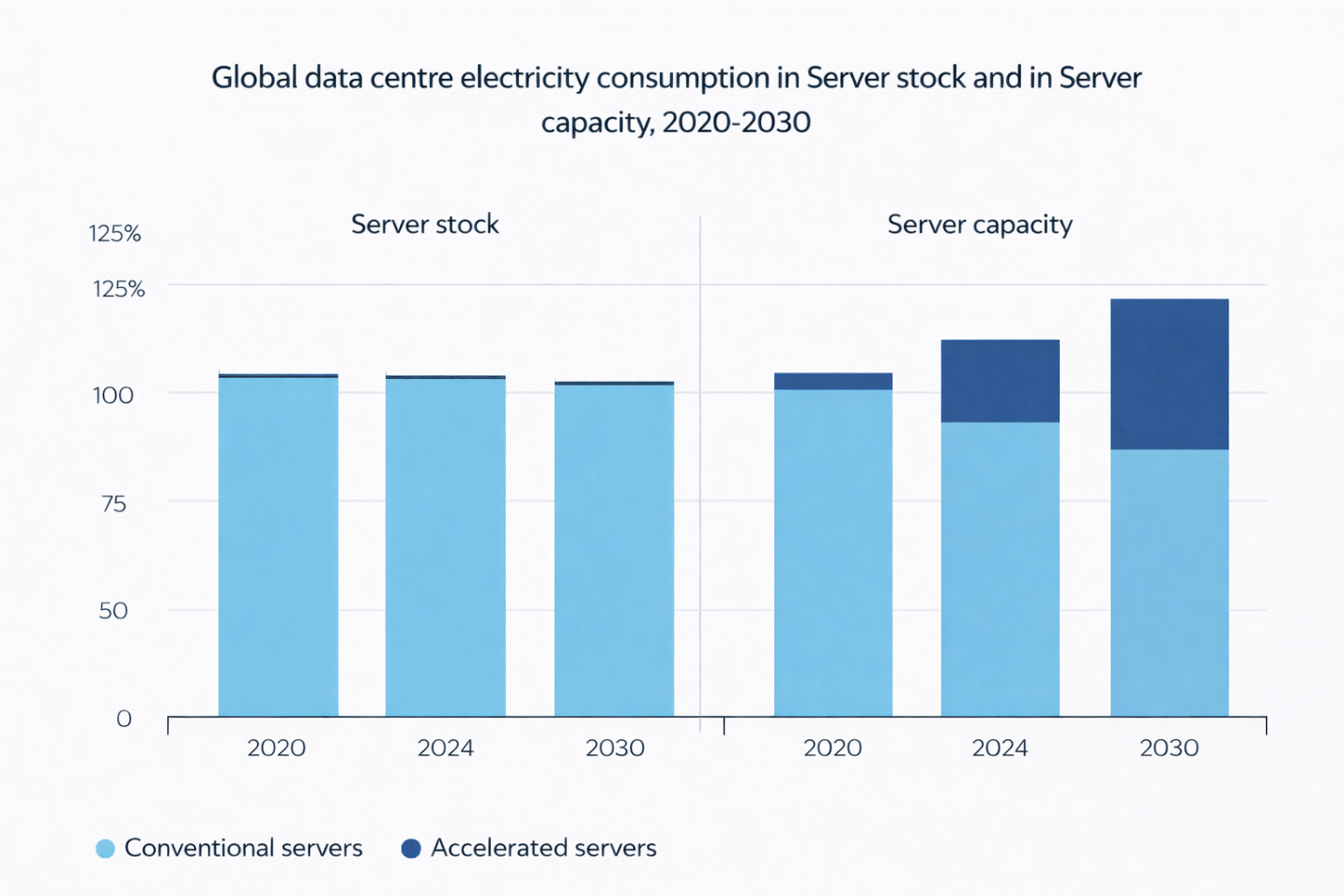 As AI adoption accelerates, the energy demand from data centres is expected to continue growing rapidly, particularly from high-performance accelerated servers used for AI workloads. While the United States, China, and Europe will continue to dominate data centre electricity consumption, emerging regions such as Southeast Asia are also becoming key players in the global data centre landscape.