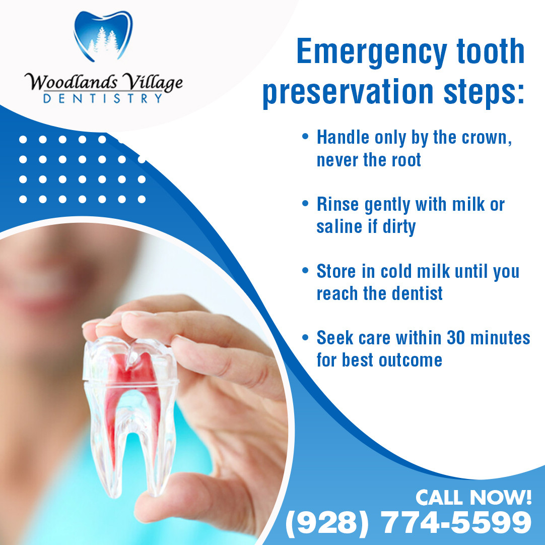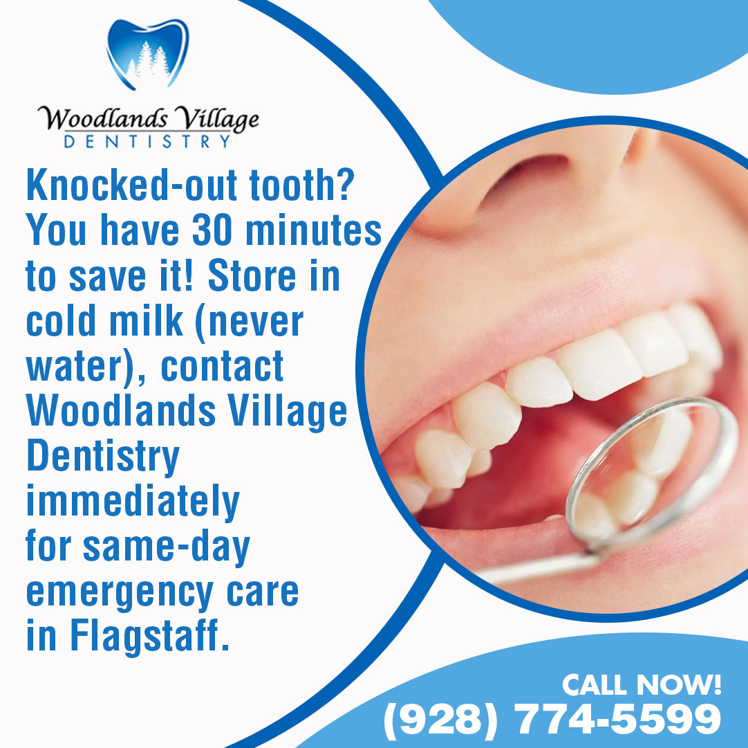 Flagstaff, Arizona – Woodlands Village Dentistry, a trusted provider of dental services in Flagstaff since 1992, is offering detailed guidance on how to respond to a knocked-out tooth. Acting quickly can mean the difference between saving the tooth and requiring a full replacement.