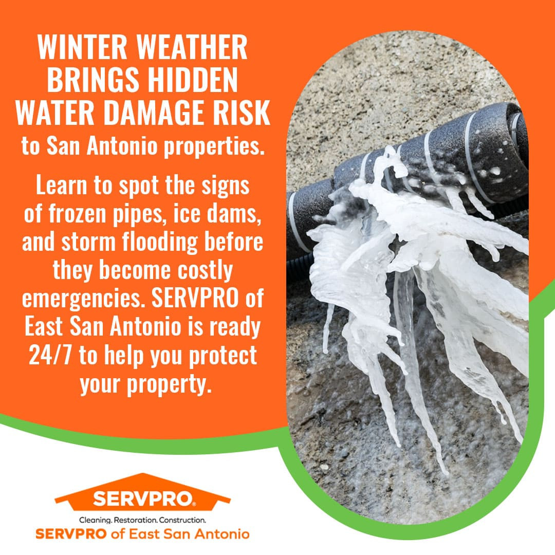 San Antonio, Texas – Winter weather conditions create numerous opportunities for water intrusion and property damage across San Antonio, and local restoration professionals are urging property owners to recognize these seasonal threats before they escalate into costly emergencies. SERVPRO of East San Antonio has identified several critical winter-related water damage scenarios that frequently affect residential and commercial properties throughout the region, emphasizing the importance of awareness and rapid response when problems occur.